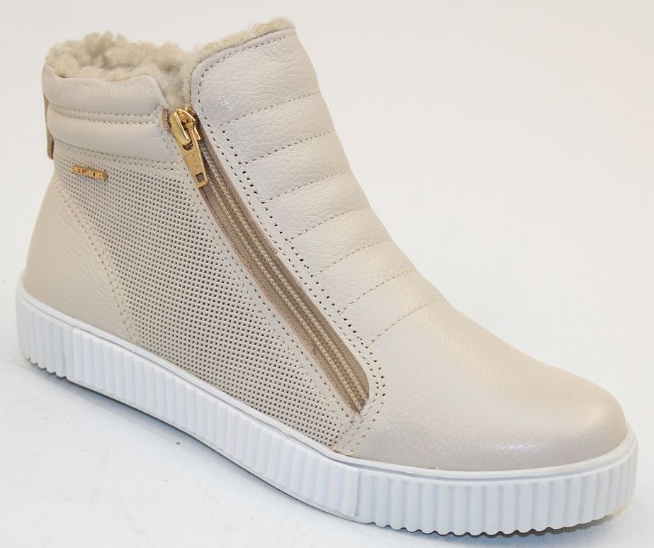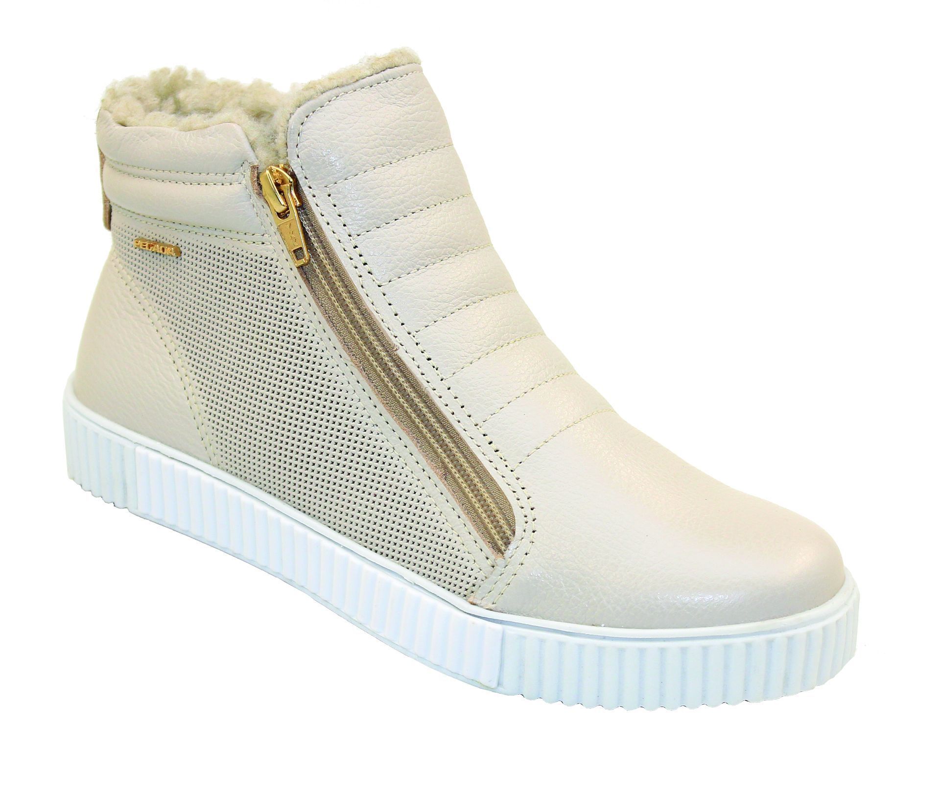 Dámská zateplená kotničková kozačka. Svrch obuvi je vyroben z vysoce kvalitní usně (kůže). Podšívka a stélka jsou vyrobeny ze syntetické vlny, která udržuje nohu v teple a poskytuje pocit pohodlí. Protiskluzová podešev je vysoce flexibilní, bezpečná a nabízí všestrannost ideální pro každodenní nošení. Zip na boku obuvi usnadňuje obouvání. Celková výška obuvi je přibližně 9,5 cm.